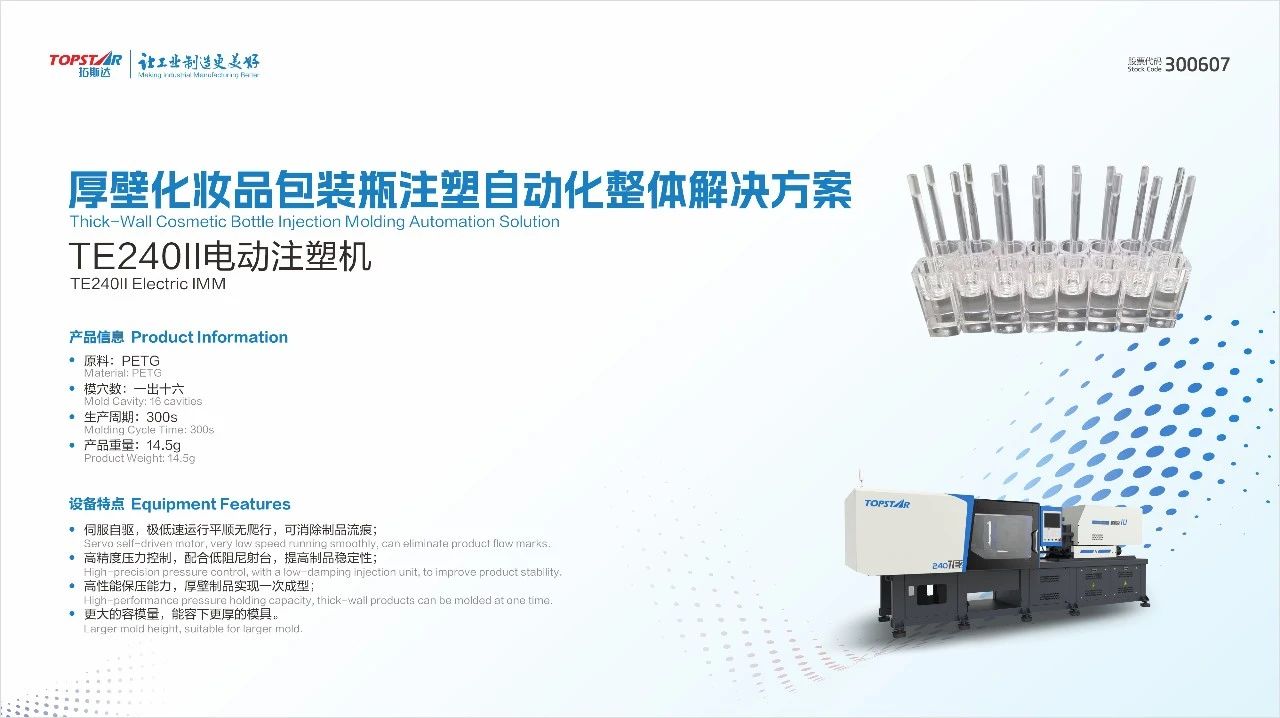 基于行业对智能化、绿色化、低碳化、数字化、精密化的升级需求,本次拓斯达三大核心智能装备注塑机、五轴联动数控机床、工业机器人齐齐亮相,以【MIM金属粉末注塑行业解决方案】、【厚壁化妆品包装行业解决方案】、【储能移动电源壳体及螺母自动埋入解决方案】、【注塑模具五轴加工中心解决方案】为展示核心。覆盖从原料到模具、再到智能设备及工艺应用的整个链条,有效帮助客户整合金属行业和注塑行业的各制造环节。