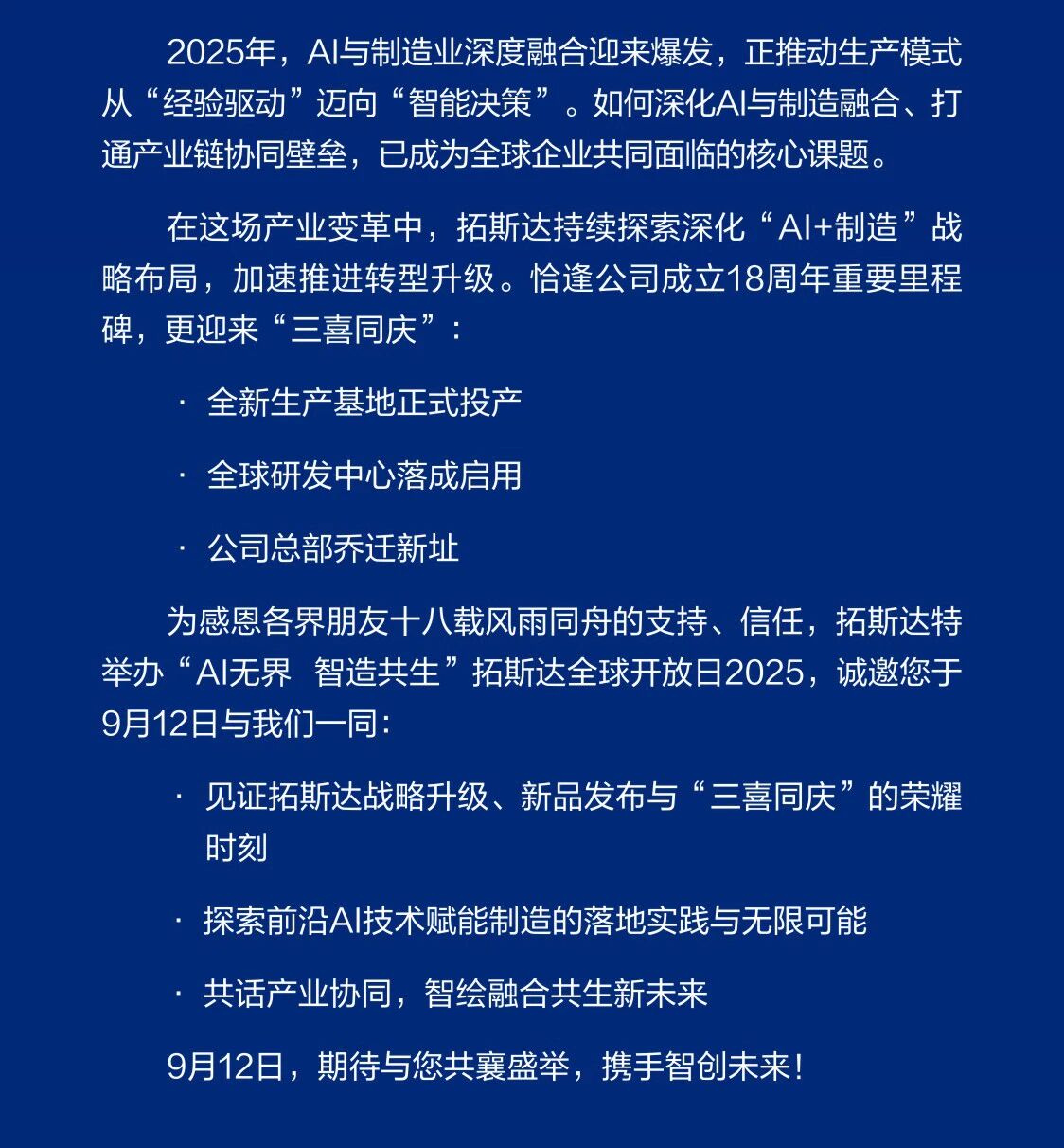 9月12日,邀您蒞臨拓斯達全球開放日2025