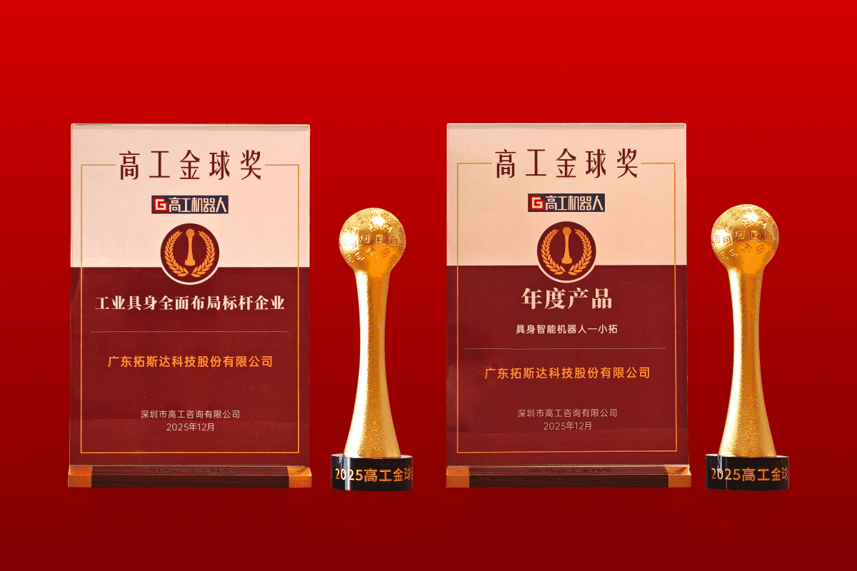 憑藉輪式機器人小拓在工業場景的落地實踐能力,拓斯達成功斬獲【工業具身全面佈局標杆企業】和【年度產品】兩項大獎。不僅是對“小拓”產品力的認可,更是對拓斯達堅持“從真實場景驅動產品進化”路徑的肯定。