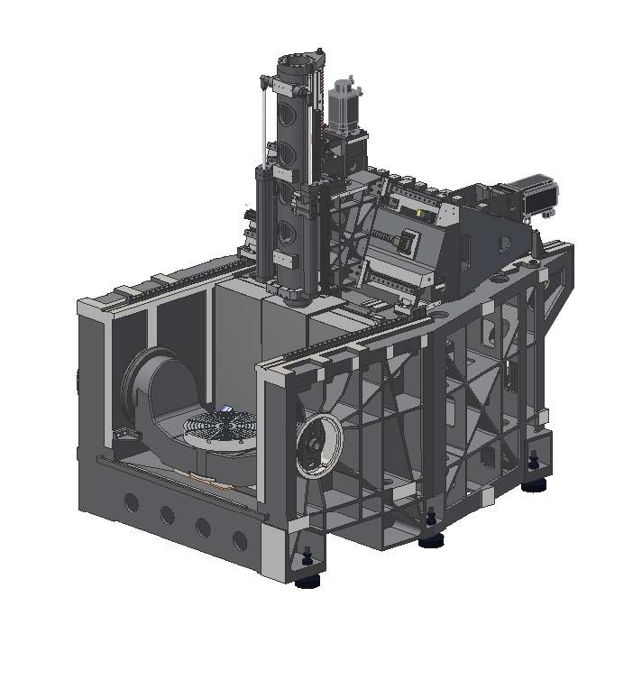 GMU-600為天車龍門結構,三軸運動置於底座上,遠離切削區域,一體式底座綜合剛性高搖籃轉檯簡支於底座上,力流短,承載能力高,Z軸為高響應氣壓平衡,有效減輕絲母動負荷,降低溫昇,延長絲杠壽命,Y軸為四條35mm高剛性滾柱導軌支承,實現出色的動態效能及精度保持性。